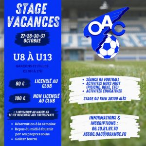 Nous organisons un stage de perfectionnement durant les vacances scolaires de la Toussaint du 27 au 31 octobre 2025. Ce stage est ouvert aux footballeuses et footballeurs évoluant en catégories U8 à U13. Informations et […]