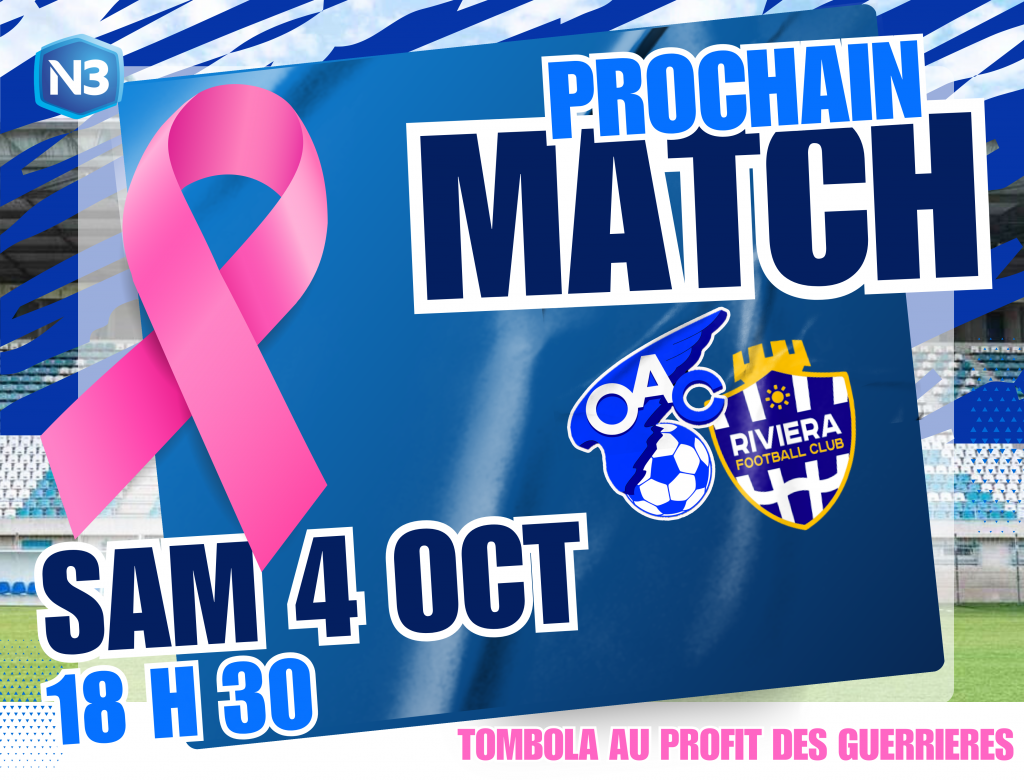 À cette occasion, la rencontre OAC-RIVIERA FC qui aura lieu le samedi 4 octobre à Pibarot sera placée sous le signe du ruban rose. Une tombola sera proposée aux spectateurs dont l’ensemble des profits seront directement offerts à l’association. En jeu, un magnifique maillot officiel 2025/2026 offert par notre partenaire équipementier ROMANET SPORT 2000.