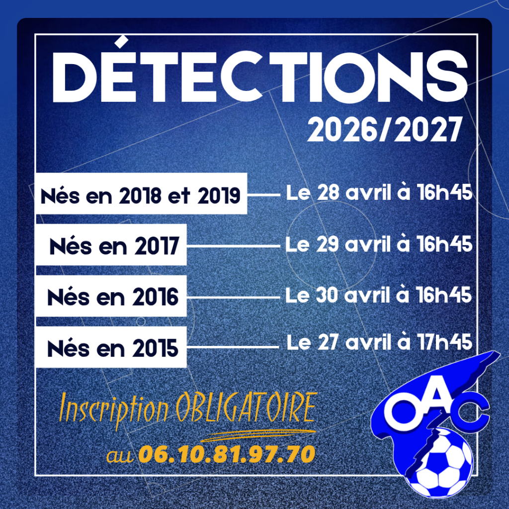 – le lieu de la détection vous sera communiqué via la convocation du club.