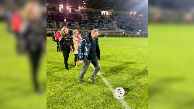 C’est son fils Jean-François (accompagné de Suzanne, épouse de Claude, et de Pauline, petite fille de Claude) qui a donné le coup d’envoi fictif de la rencontre OAC-CARNOUX FC, après une minute d’applaudissements à la mémoire du dirigeant disparu.